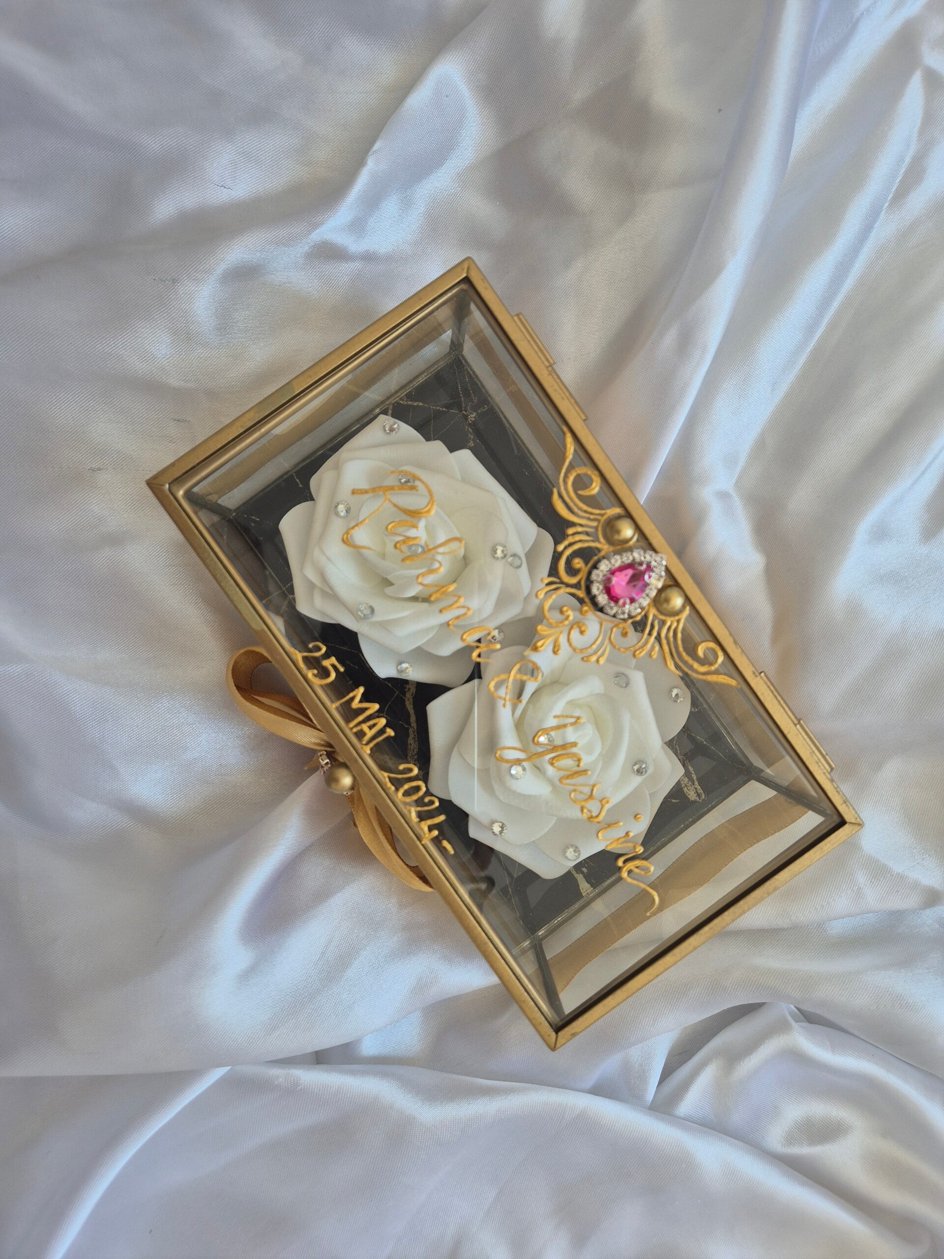 Porte alliance avec bordure doré ou noir , rose blanche ou rouge avec décoration en doré